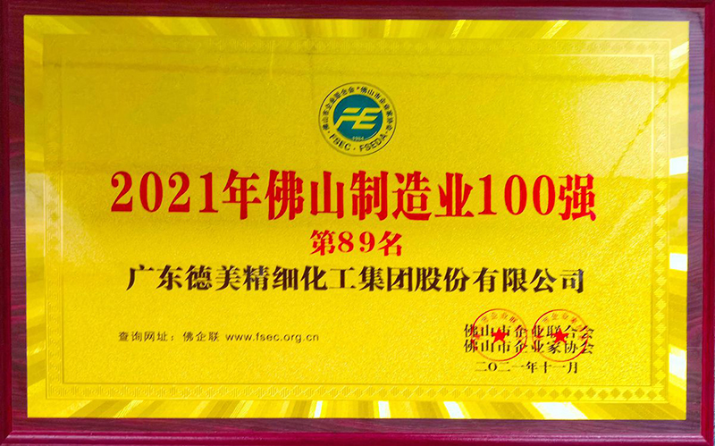 11月20日下午,由佛山市企業(yè)聯(lián)合會、佛山市企業(yè)家協(xié)會主辦的2021年佛山市企業(yè)家活動日暨佛山企業(yè)100強、制造業(yè)100強企業(yè)發(fā)布會在佛山皇冠假日酒店舉行。這是佛山第三次發(fā)布企業(yè)100強榜單,今年還首次推出“2021佛山企業(yè)制造業(yè)100強”榜單,以此展示佛山的大企業(yè)實力、城市競爭力以及城市形象。德美化工憑借著領(lǐng)先的研發(fā)實力、強大的產(chǎn)品競爭力和完善的市場銷售體系,榮登2021年佛山制造業(yè)100強榜單。