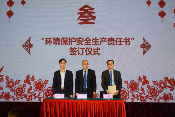 安全生產(chǎn)和環(huán)保工作是企業(yè)可持續(xù)發(fā)展的基礎(chǔ)。德美化工作為一家上市公司,始終認(rèn)真履行“保護(hù)環(huán)境、保護(hù)員工的生命健康安全”等社會(huì)責(zé)任。在此莊嚴(yán)的時(shí)刻,股份公司各事業(yè)部負(fù)責(zé)人上臺(tái)和股份公司總經(jīng)理簽訂各事業(yè)部2018年度環(huán)境保護(hù)安全生產(chǎn)責(zé)任書(shū)。