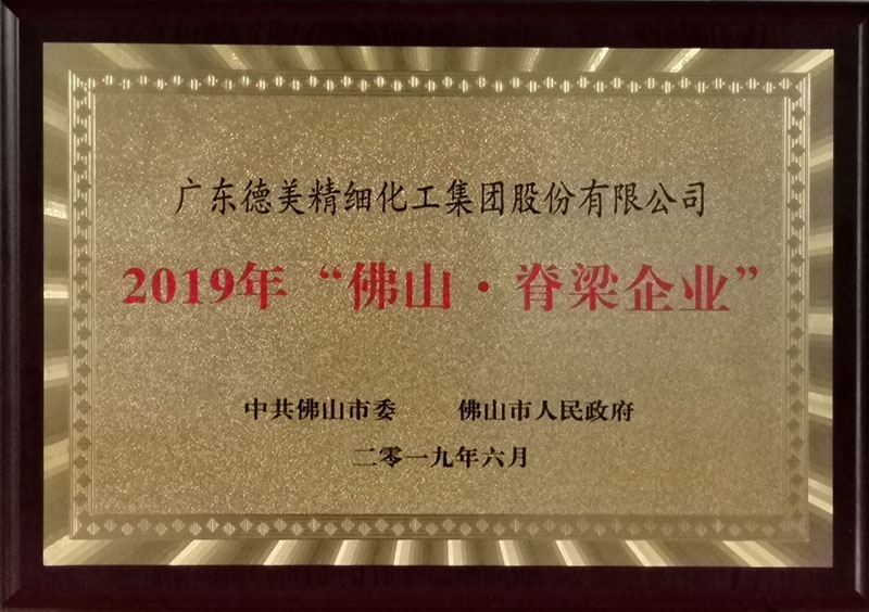 6月21日上午,佛山市委、市政府隆重召開2019年“佛山·脊梁企業(yè)”“佛山·大城企業(yè)家”宣傳大會(huì),會(huì)議公布了2019年“佛山·脊梁企業(yè)”、“佛山·大城企業(yè)家”宣傳對(duì)象名單。共計(jì)20家企業(yè)被列為“佛山·脊梁企業(yè)”宣傳對(duì)象;20名企業(yè)家被列為“佛山·大城企業(yè)家”宣傳對(duì)象。德美化工榮獲“佛山·脊梁企業(yè)”殊榮。