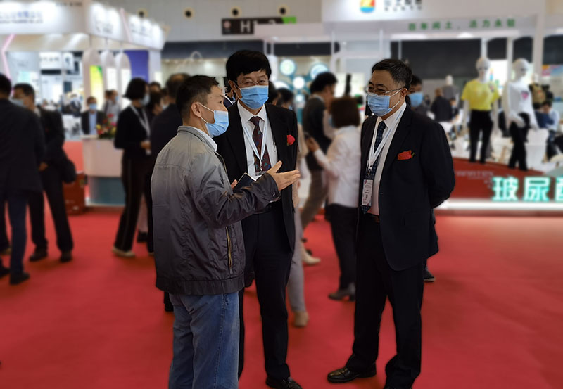 因?yàn)樾鹿谝咔榈脑颍瑖?guó)內(nèi)外經(jīng)濟(jì)遭受?chē)?yán)峻考驗(yàn),展會(huì)組織異常艱難,難得是展會(huì)雖遲但到,向外界展示了我們克服困難的決心和信心。11月8日上午,中國(guó)石化聯(lián)合會(huì)副會(huì)長(zhǎng)李彬,中國(guó)染料工業(yè)協(xié)會(huì)會(huì)長(zhǎng)史獻(xiàn)平等行業(yè)領(lǐng)導(dǎo)蒞臨展會(huì),為參展企業(yè)站臺(tái)、加油打氣。